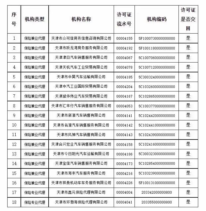 近日,天津金融监督管理局更是一口气注销了辖内16家保险兼业代理机构、2家保险专业代理机构保险中介许可证。