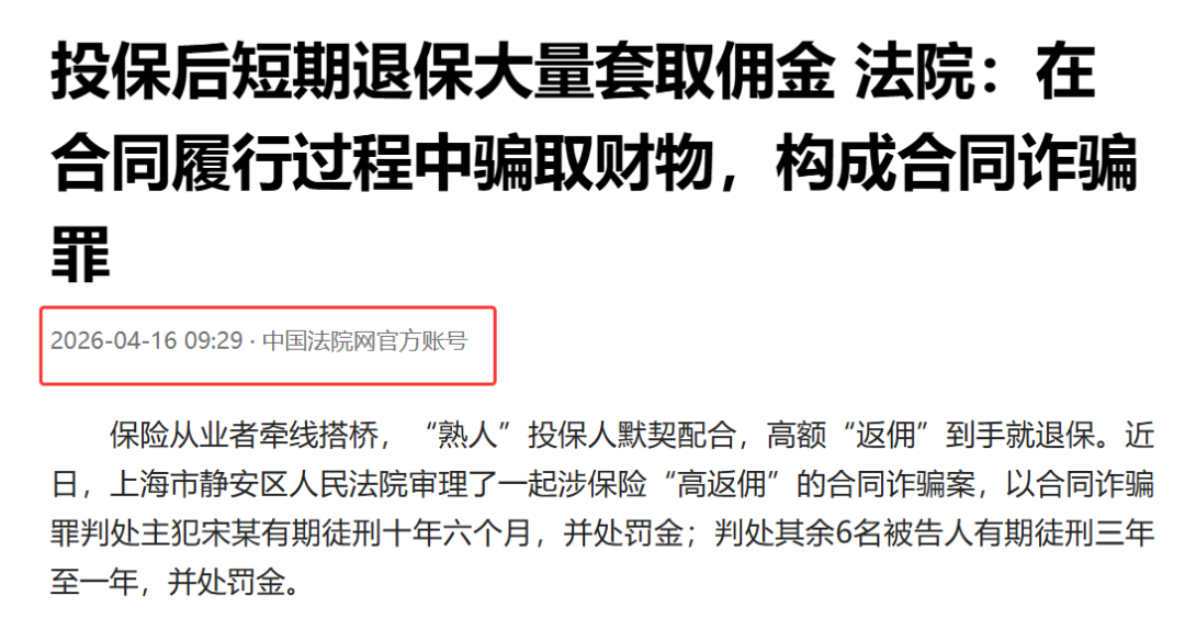 “ 因为干赌场被判缓刑的宋某,在缓刑期间竟然承包了一家保险中介的市级分公司,堂而皇之地干起保险业务,最后利用高额“返佣”到手就退保,骗取了上千万高额保费佣金。”